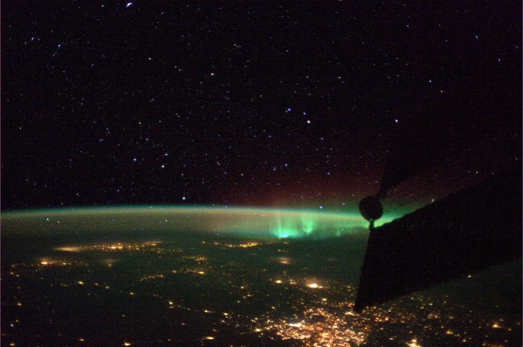 Italian astronaut Luca Parmitano shares a lot of fantastic photos taken from his privileged position 260 miles up aboard the Space Station, orbiting the planet 16 times a day. This is his latest, a stunning view of nighttime city lights spread out beneath a glowing dome of ghostly
