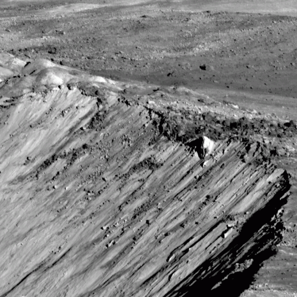 Caption: Close-up detail of the rim of Giordano Crater. Credit: NASA/GSFC/Arizona State University