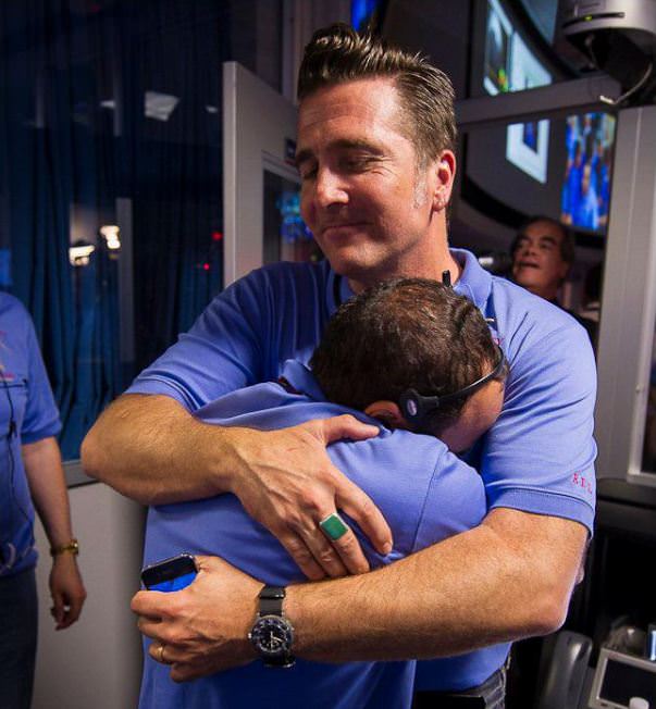 Adam Steltzner and another Curiosity team member celebrate the successful landing. Credit: NASA/Bill Ingalls.
