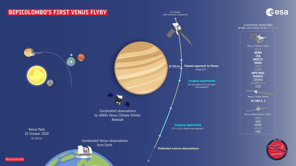 The joint Japanese/European Space Agency's BepiColombo spacecraft makes a scheduled pass near Venus tonight, while the cloud-shrouded planet has been very much in the news.