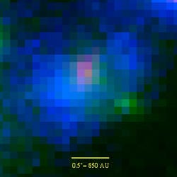 Moreover, Sridharan's images reveal a circumstellar disk surrounding the more massive of the two stars. The presence of a disk suggests that massive, multiple-star systems form the same way as the Sun, by gradually accreting material from a gaseous disk.