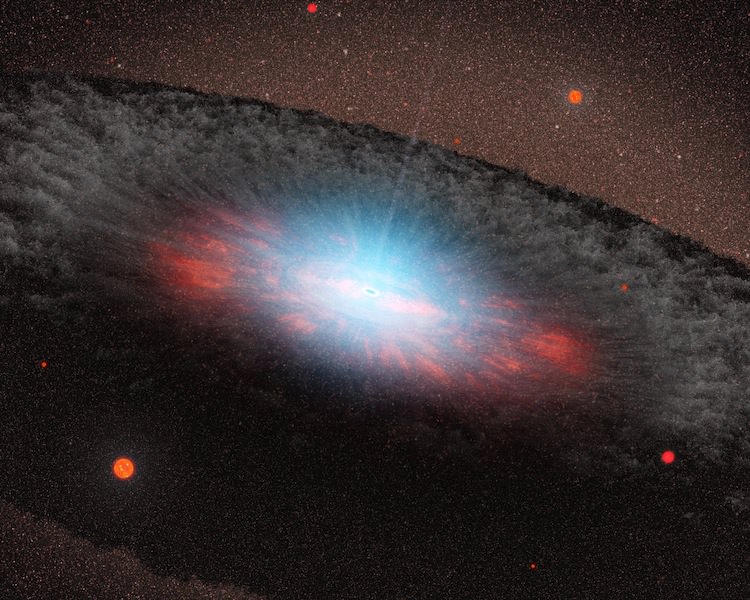 A eye-opening discovery has been made by an international team of scientists led by astronomer Paul van der Werf (Leiden University, The Netherlands). They have discovered a black hole in the early Universe located about 12 billion light years away that's surrounded by a nearly impenetrable disk of gas and dust. The halo isn't the surprise, however... but the presence of star formation in dense water vapor is.