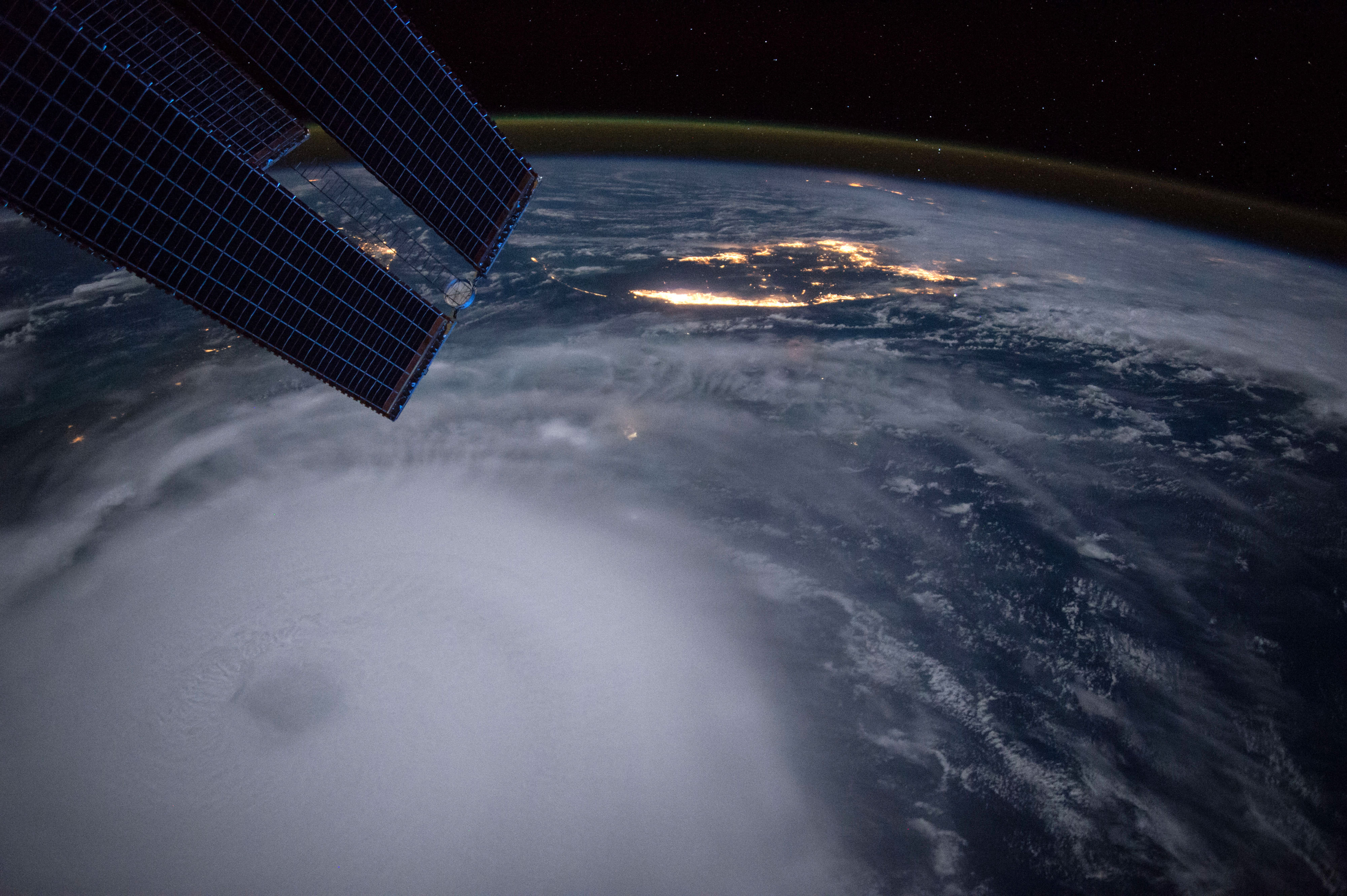 Kelly's spectacular storm photo shows the eye of Hurricane Joaquin over the Caribbean and off the US eastern seaboard with the limb of the Earth and our atmosphere in beautiful detail.