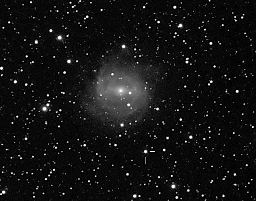 , which shines at magnitude 10, bright enough to see in a 6-inch telescope from a dark sky. The supernovae is still climbing in brightness and today gleams at about 11.6 magnitude - no problem in that 6-inch if you're equipped with a good map or photo to help get you there.