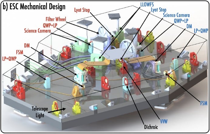 Mechanical design of the Extra Solar Camera instrument planned for implementation on the Lazuli Observatory. Credit - A. Roy et al.