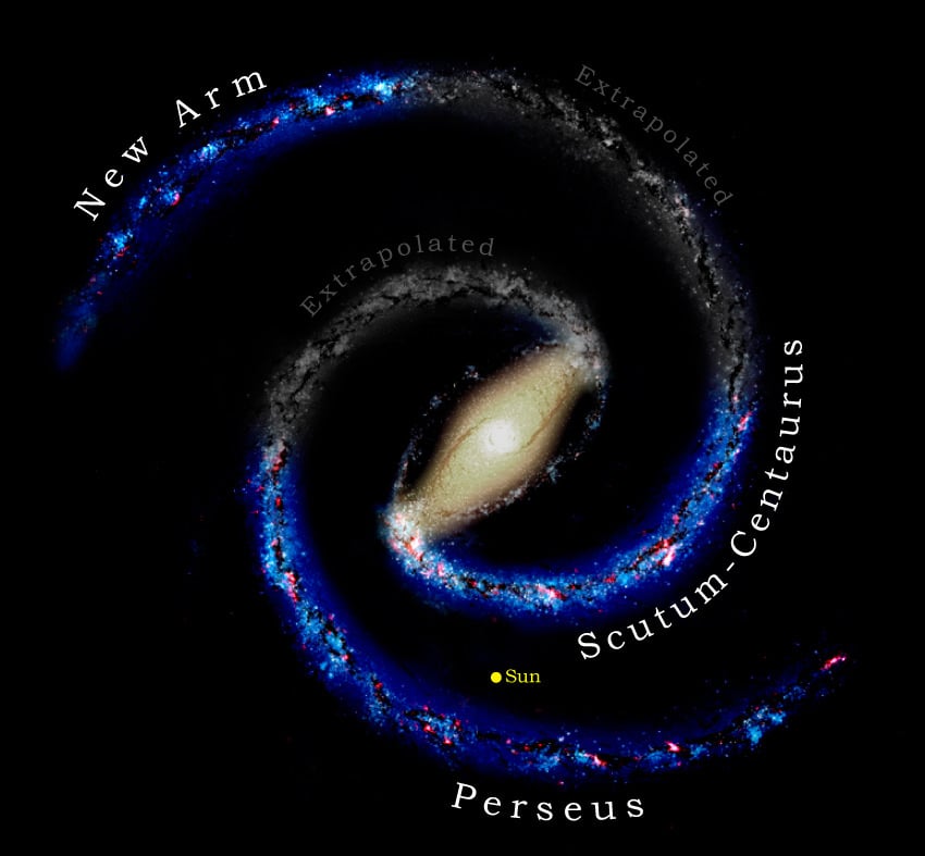 Our Milky Way Galaxy's elemental form is hypothesized to be a barred structure - made up of two major spiral arms originating at both poles of the central bar. But from our vantage point, we can only see portions of those arms. Because of huge amounts of dust literally blocking our view, we can't be as confident of our structure as other galaxies we can study as a whole. However, by "sniffing our galaxy's tailpipe", we're able to judge our structure just a little bit better.