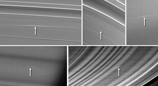 Tiscareno and his colleagues now think meteoroids of this size probably break up on a first encounter with the rings, creating smaller, slower pieces that then enter into orbit around Saturn. The impact into the rings of these secondary meteoroid bits kicks up the clouds. The tiny particles forming these clouds have a range of orbital speeds around Saturn. The clouds they form soon are pulled into diagonal, extended bright streaks.