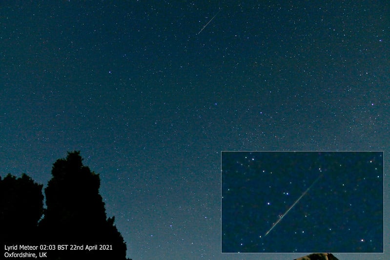 A Lyrid meteor over Oxfordshire, United Kingdom from 2019. Credit: Mark and Mary McIntyre/The Global Meteor Network.