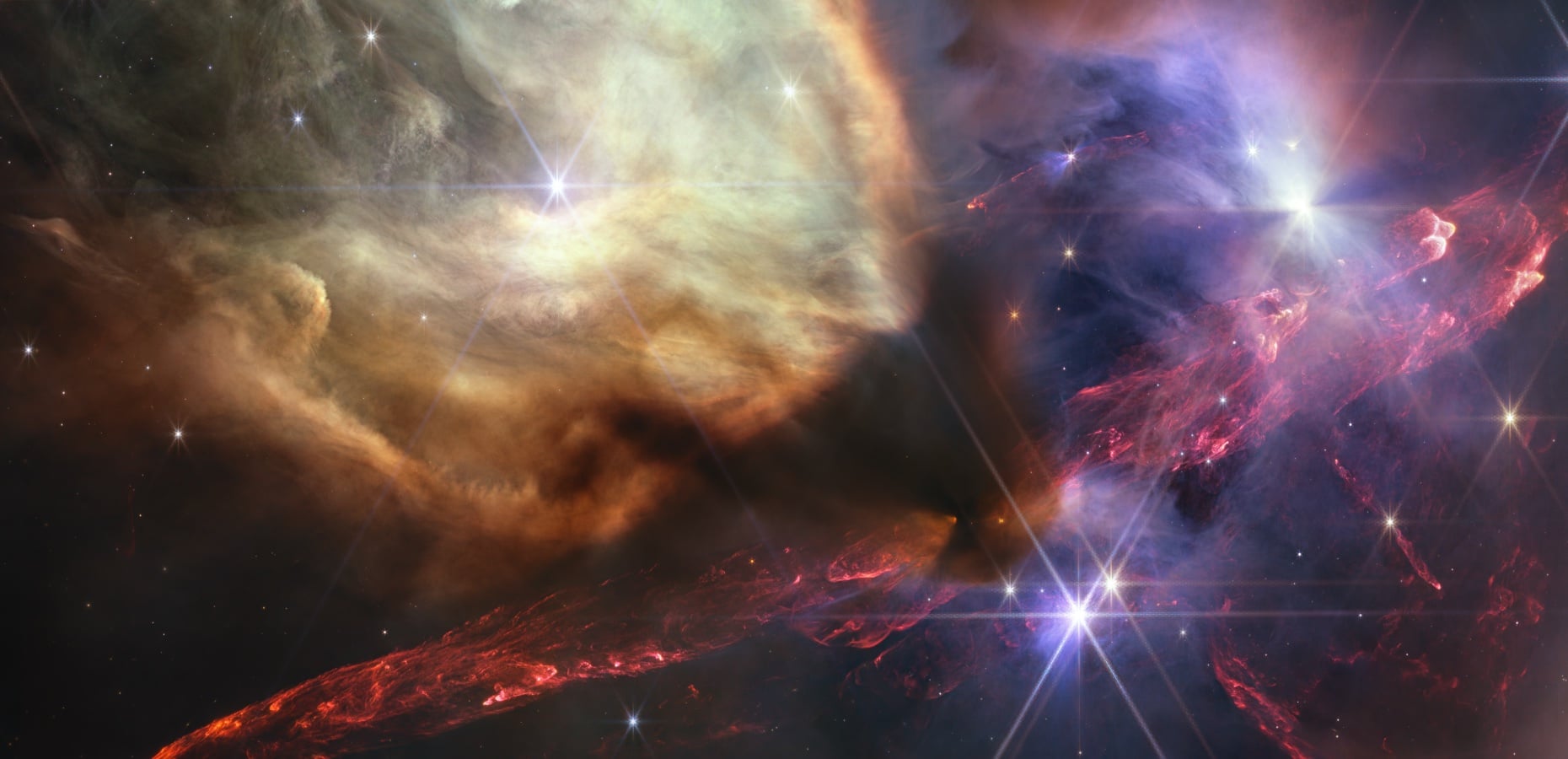 The image also tells the story of the power of JWST, which is capable of observing the region at infrared wavelengths. These wavelengths highlight the heat of young stars and can penetrate deep into cold molecular clouds, giving us a much richer view of the region than mere optical wavelengths. Thus the image is not just a story of the cosmos, it is a tale of human ingenuity, and the human search for knowledge.