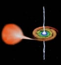 Astronomers announced this week that they have seen the complete life cycle of X-ray jets spewing out of a black hole. The jets were first discovered coming out of stellar mass black hole XTE J1550-564, and then the astronomers watched them for 4 years using the Rossi X-ray Timing Explorer. The jets were traveling at nearly the speed of light until this year when they began to slow down because of interactions with interstellar gas. Similar jets have been seen emanating from supermassive black holes, but they take thousands of years to go through this process.