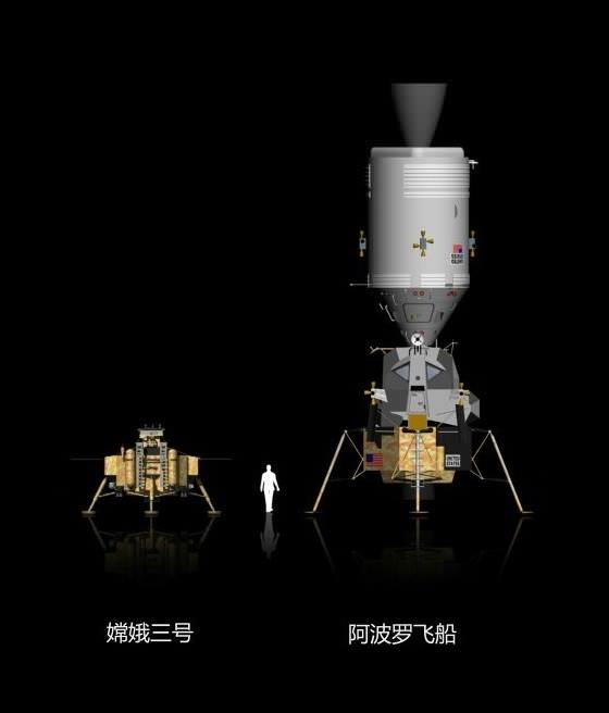 For context, the landing gear span of Chang'e-3 is approximately 4.7 meters vs. 9.07 meters for NASA's Apollo Lunar Module (LM).