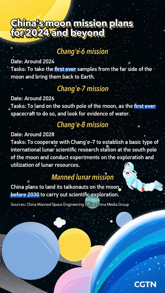 During the Forum, details were shared by Wu Weiren, the chief designer of the lunar exploration program, about the future of the Chinese Lunar Exploration Program (Chang'e) and how these will contribute to the realization of the ILRS. This includes the Chang'e-6 lunar probe, which is scheduled to launch sometime next year and will conduct the first-ever sample return from the far side of the Moon. The Chang'e-7 mission, which will launch around 2026, will be the first lander and rover to search for evidence of water around the lunar south pole.