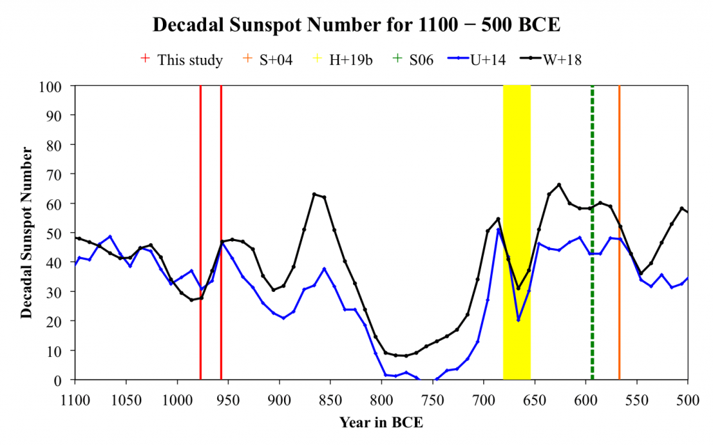 Researchers also noted that tree ring data (another source of defining ancient solar activity) suggest that the Sun was especially active and on the uptick in the 10ththru the 8thcentury before what is known as the Homeric Grand Minimum, and that the drifting magnetic pole and auroral oval would have been tipped towards the Eurasian side of the globe at the time, also favoring Chinese observers.
