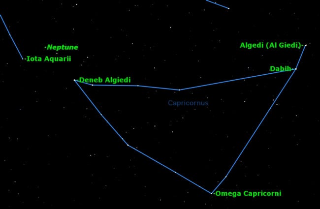 And so, in April and July of this year (2010), Neptune came very close to returning to its apparent position in the sky at the time of its discovery (in geocentric right ascension and declination), actually much closer than it will be next year when it returns to its 1846 heliocentric longitude. It's location at discovery and currently is in the constellation Capricornus.