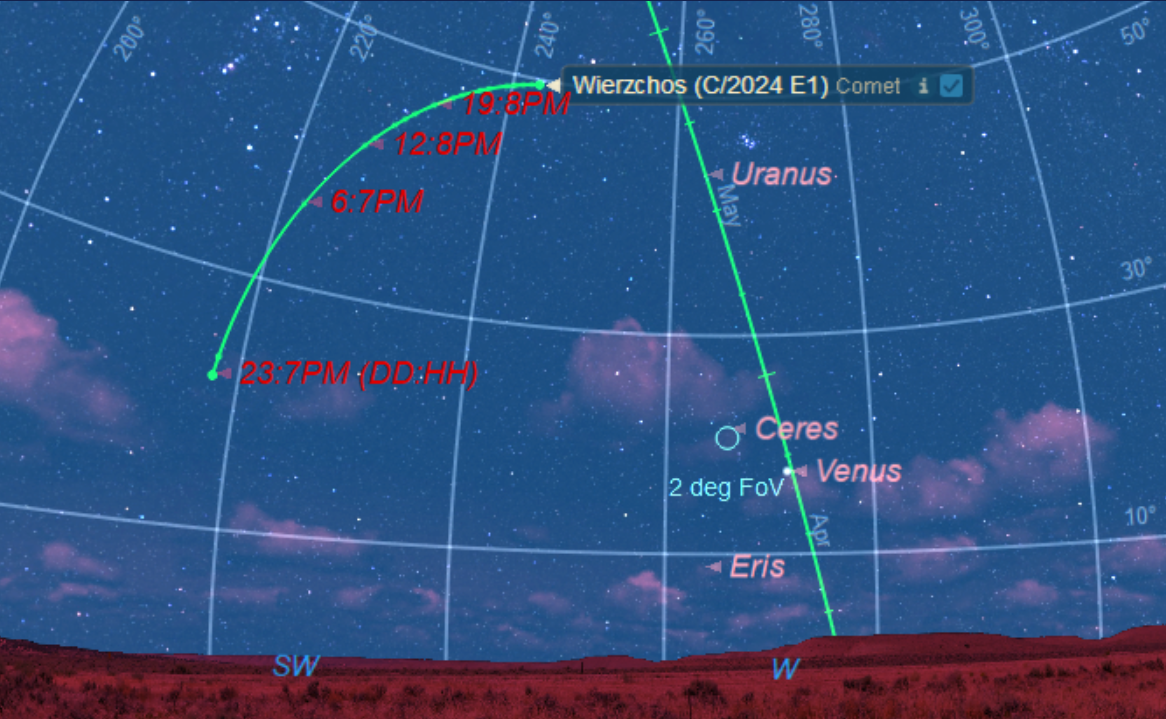 March is the time to catch the encore performance for comet E1 Wierzchos crossing the evening sky.