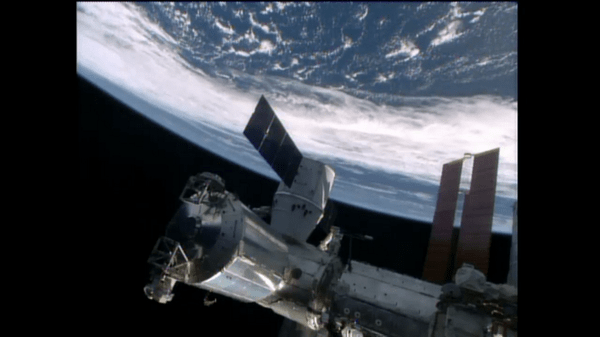 Dragon was berthed at the Earth-facing port on the stations Harmony module.