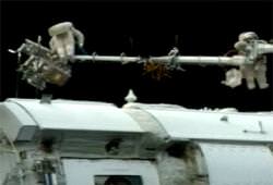 The International Space Station is getting an upgrade today. Cosmonauts Fyodor Yurchikhin and Oleg Kotov stepped outside the station this afternoon, to begin a 6-hour spacewalk to install a debris protection system to the Zvezda module. The station's 3rd resident, US astronaut Sunita Williams, remained inside.