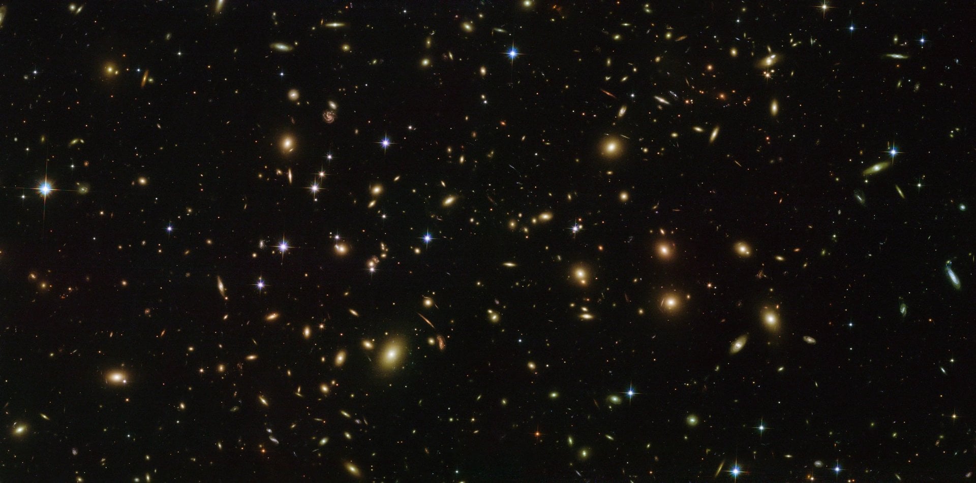 *Hubble's "Cosmic Fireflies," a rich cluster of galaxies called Abell 2163. Credit: NASA/ESA/STScI*