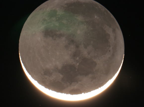 While the Earth absorbs a lot of energy from the Sun, a lot of it is reflected back into space. The sunlight reflected from Earth is called Earthshine. We can see it on the dark portion of the Moon during a crescent Moon. The Farmer's Almanac said it used to be called " the new Moon in the old Moon's arms. "