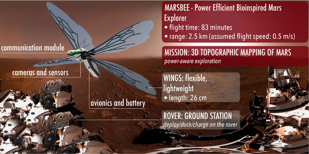 The concept was initially inspired by work at the University of Tokyo on a dragonfly-like micro aerial vehicle (MAV). It is one of the few drones able to fly in Earth's gravity using flexible wings that flap. But would it be useful on Mars?