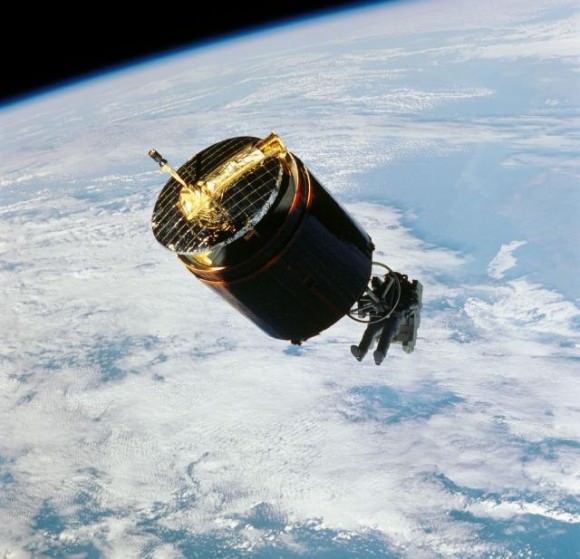 The shuttle mission was packed with satellite activity, with crew members deploying the Canadian communications satellite Anik D2, and U.S. defense communications satellite Leasat-1. Then it was time to pick up a couple of broken satellites to haul back to Earth.