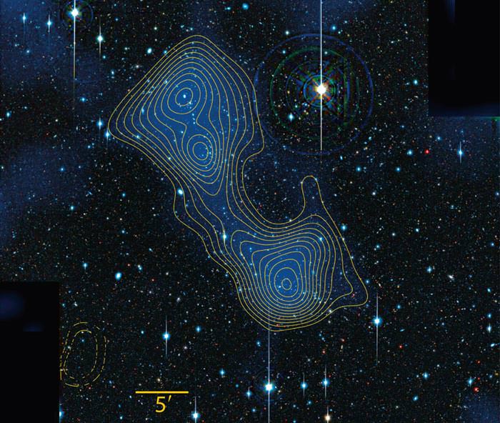 "What's exciting," says Mark Bautz, an astrophysicist at the Massachusetts Institute of Technology, "is that in this unusual system we can map both dark matter and visible matter together and try to figure out how they connect and evolve along the filament."