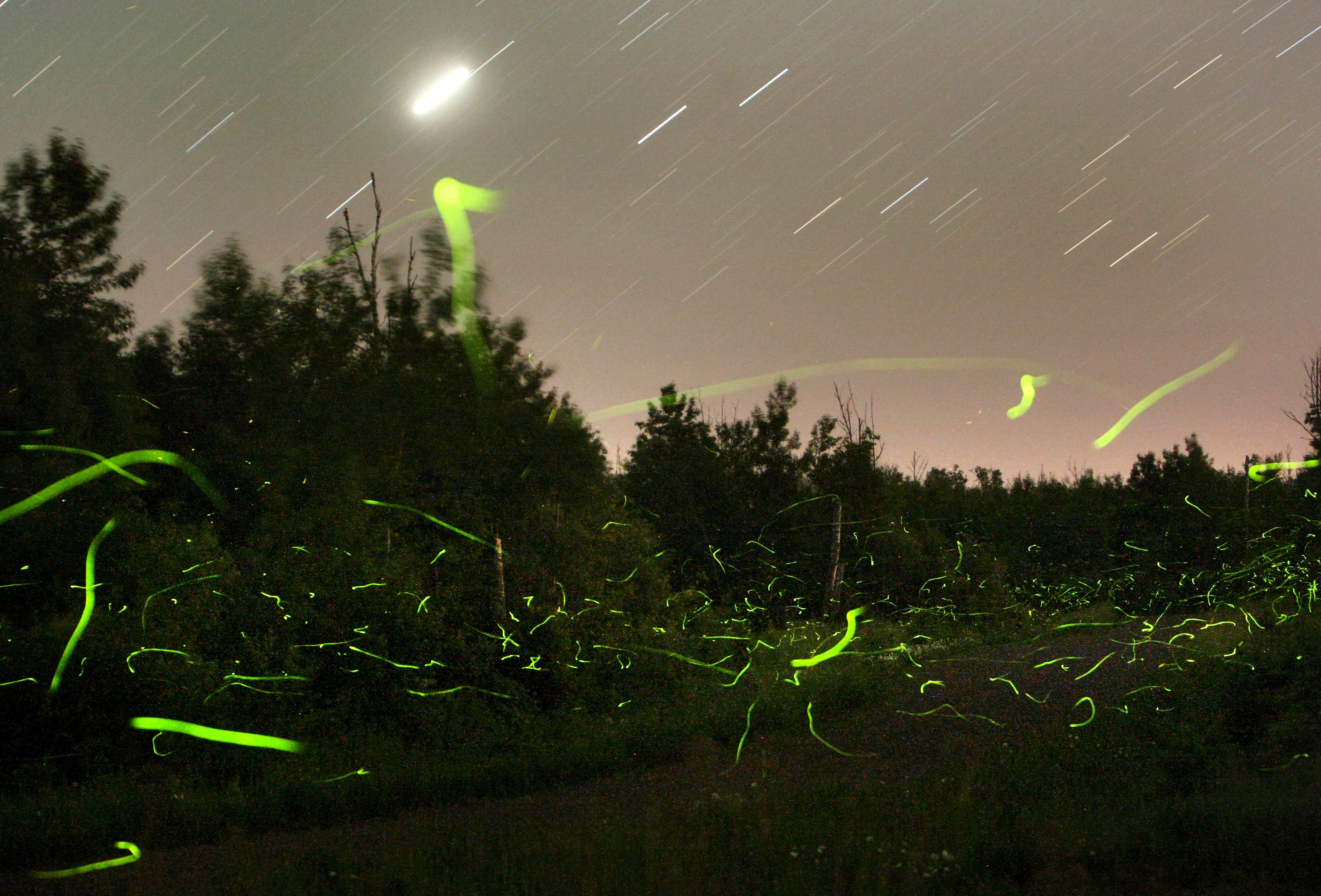 Fireflies compete with the stars from a dark location near Duluth, Minn. two nights ago. Each species has its own specific flash pattern. Credit: Bob King[/caption]