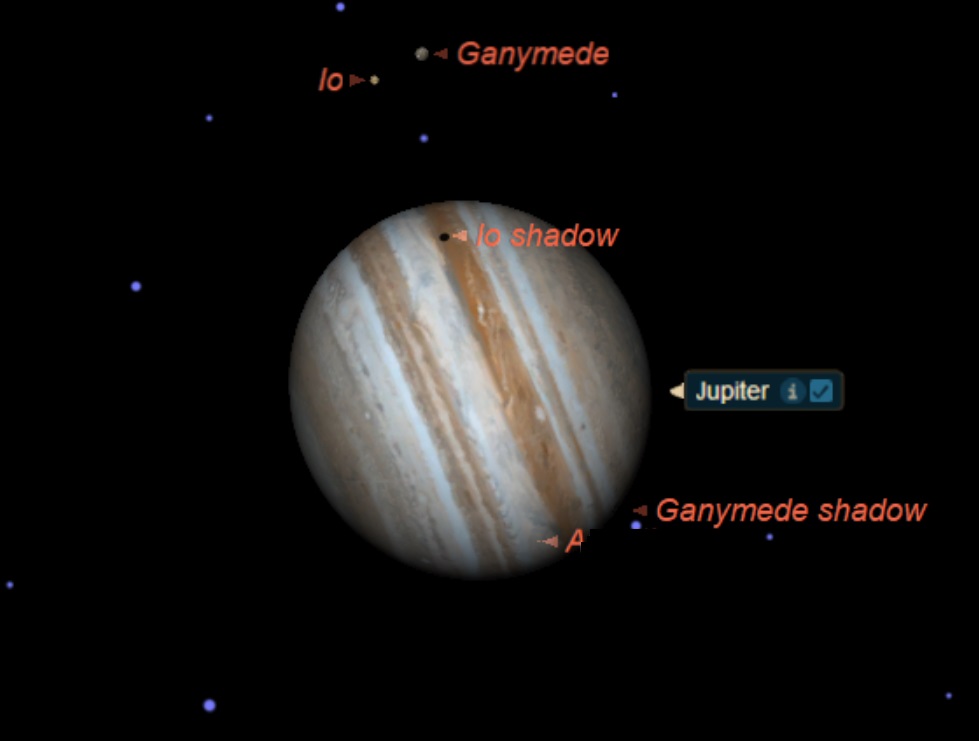 Zoom in on Jupiter at around ~18:00 UT on March 17th, and you might just spy another celestial treat, as the Galilean moons Ganymede and Io both briefly cast shadows back onto the Jovian cloud tops from 17:40 to 18:03 UT favoring viewers based along the eastern coast of Australia and New Zealand.
