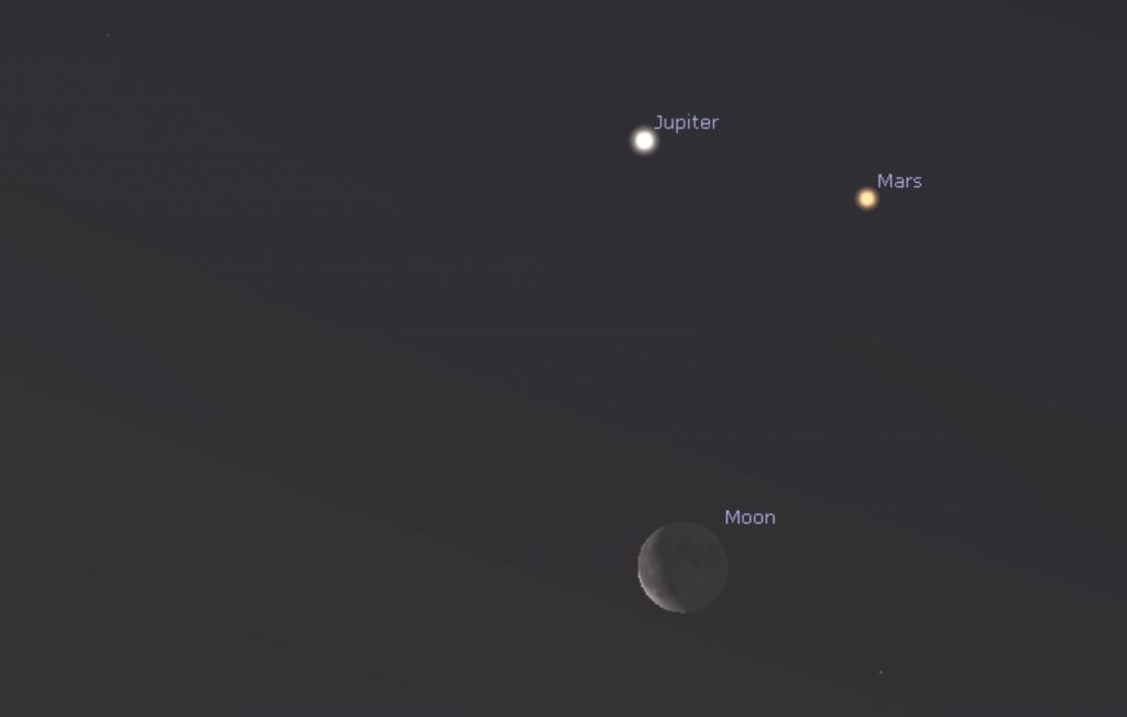 It's a spectacular gathering of planets worth setting your alarm clock for, with Mars, Jupiter and the crescent Moon all within a two degree circle on the morning of March 18th.
