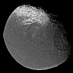 Saturn's moon Iapetus and its strange "rindge". Image credit: NASA/JPL/SSI.
