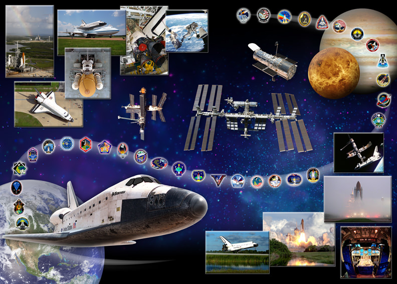 NASA has put out a collection of tribute posters to the Space Shuttle fleet that celebrates the contributions to human space flight of Columbia, Atlantis, Discovery, Challenger and Endeavour. Large versions of these posters now hang in Firing Room 4 of the Launch Control Center at NASA's Kennedy Space Center in Florida. Click on each image for a larger version that you can download.