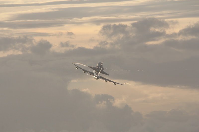 The farewell flight went off without a hitch following two days of weather related delays. The shuttle & 747 Shuttle Carrier Aircraft (SCA) Jumbo Jet were in tip top shape.