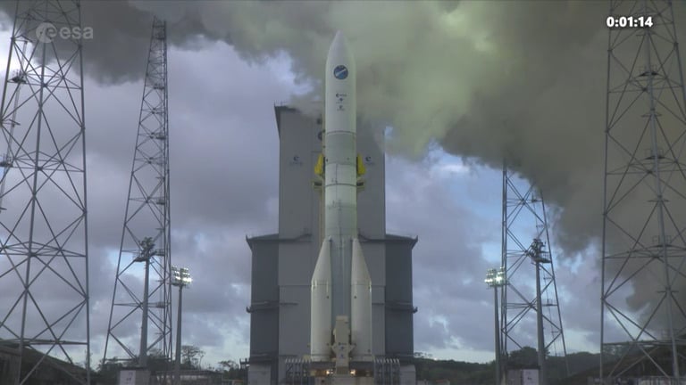 Ariane 6 has been in the works since the early 2010s to be a replacement the workhorse Ariane 5, which is no longer in production. Ariane 5's first successful launch was in 1998, and since then has sent 109 spacecraft on their way, including the first ATV Jules Verne to the International Space Station and the James Webb Space Telescope to the second LaGrange point 1.5 million km (1 million miles) from Earth.