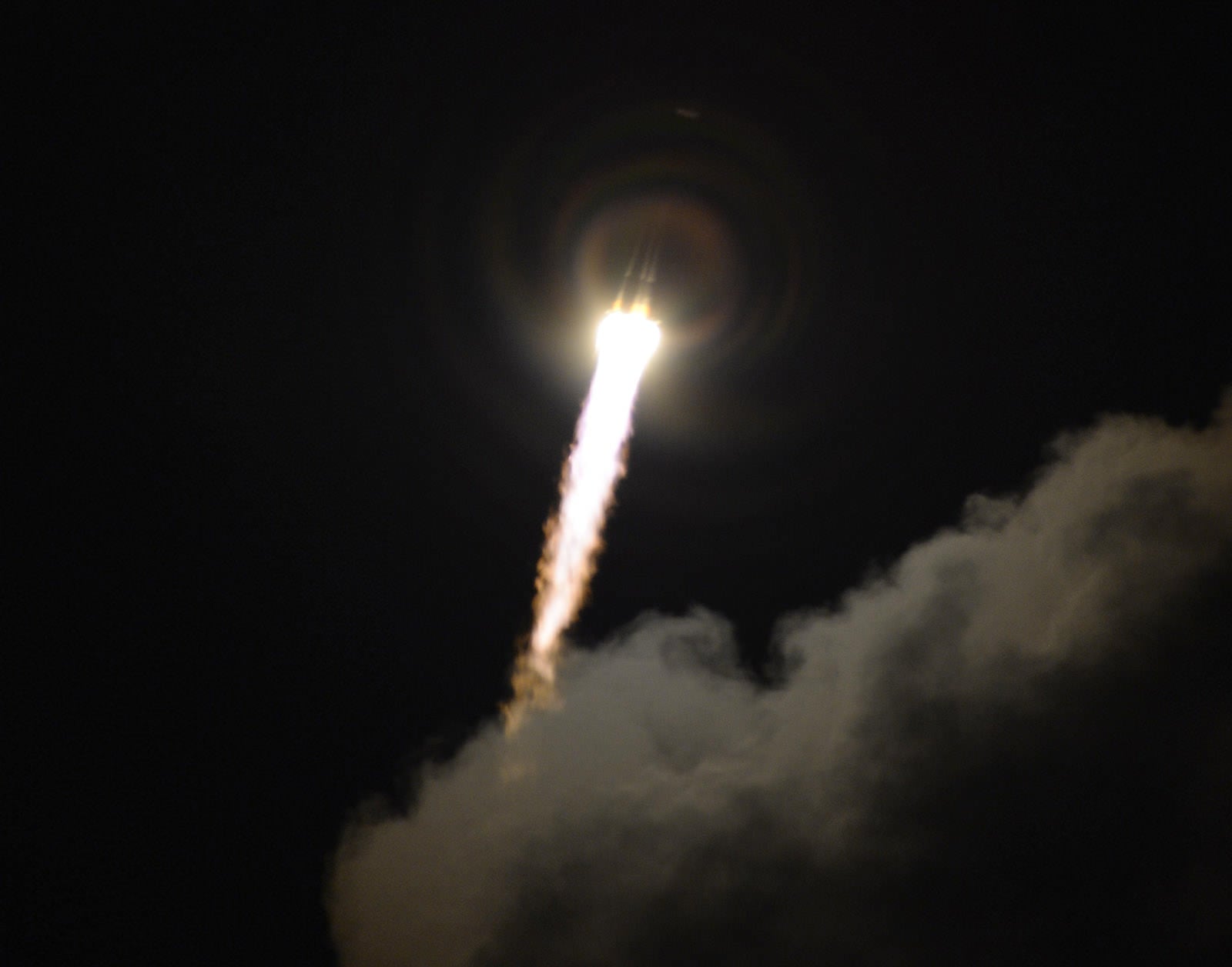 , French Guiana was brilliantly sliced by the fiery exhaust of a Soyuz VS06, which ferried ESA's "billion-star surveyor"