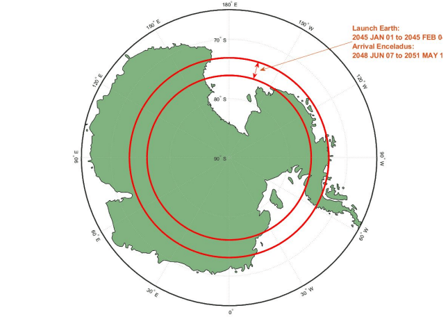 There are specific launch windows to reach Europa and Enceladus, according to the authors. The windows depend on where Earth and the target moons are but also on spacecraft velocity. And that depends partly on laser power.