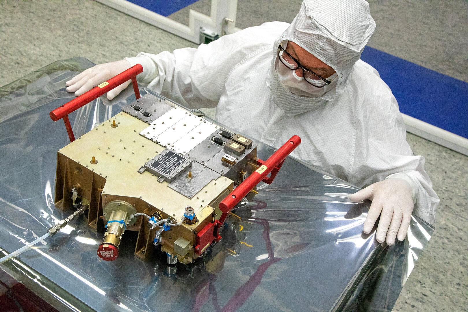 This instrument is known as the ultraviolet spectrograph (UVS), which was designed and built by the Southwest Research Institute (SwRI) in San Antonio, Texas. The UVS instrument is now on the premises of the manufacturer's (Airbus SE) Defence & Space Division in Friedrichshafen, Germany, where it will be integrated onto the spacecraft.