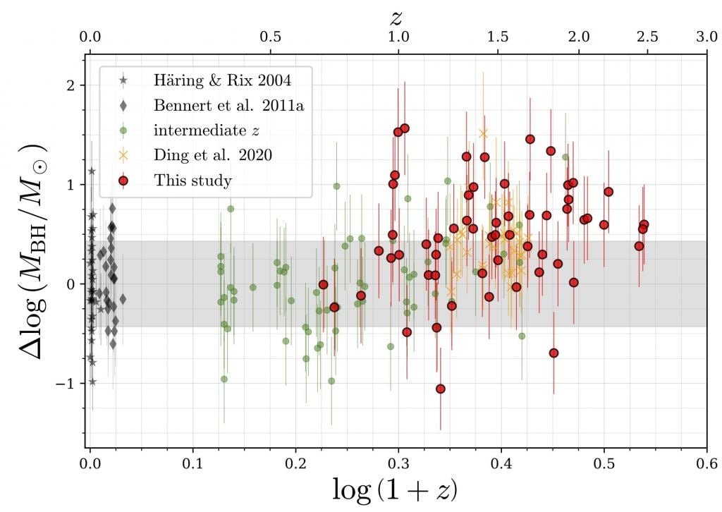 Unfortunately, the uncertainty of this result is rather large. It will take more observations, particularly at the higher redshift end, to pin down the relation more precisely. But in the coming years, astronomers should be able to gather this data. This study shows that galaxies and their black holes grow at similar rates across billions of years. Future studies will help us understand the more subtle connections between them.