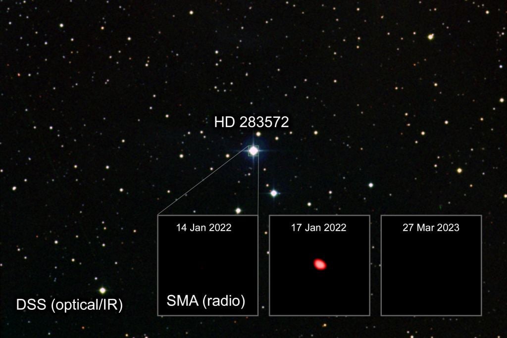 Lovell and his team targeted the star, called HD 283572, in a search for circumstellar dust. It's fairly young—about the same age the Sun was when our planets were first forming. It lies some 400 light-years away and is roughly 40 percent more massive than our star. During the outburst, it brightened up by about a factor of a hundred over 9 hours. The flare released about a million times more energy than any millimeter flares seen on any stars near the Sun.