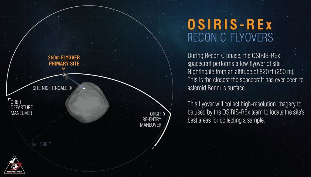 Today's observations will take place from an orbital distance of 820 ft (250 m), with the goal of collecting high-resolution imagery of the site so that the team can locate the best areas for collecting a sample.