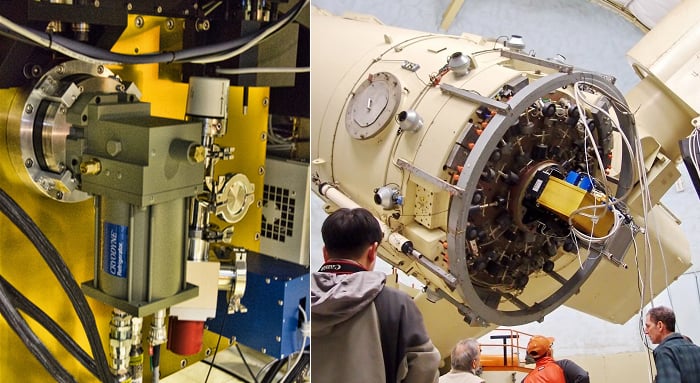 The Immersion GRating INfrared Spectrograph (IGRINS) instrument used to study HR 5599 and WASP-189b shown mounted at the McDonald Observatory in Texas. It was on loan to Gemini South when the observations were taken. Courtesy McDonald Observatory.