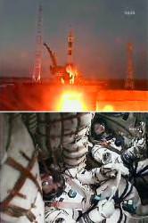 The Soyuz TMA-11 spacecraft blasted off from the Baikonur Cosmodrome in Kazakhstan today at 1322 UTC (9:22 a.m. EDT). It should take another two days for them to match orbits with the International Space Station; the docking is planned for Friday at 1452 UTC (10:52 a.m. EDT).
