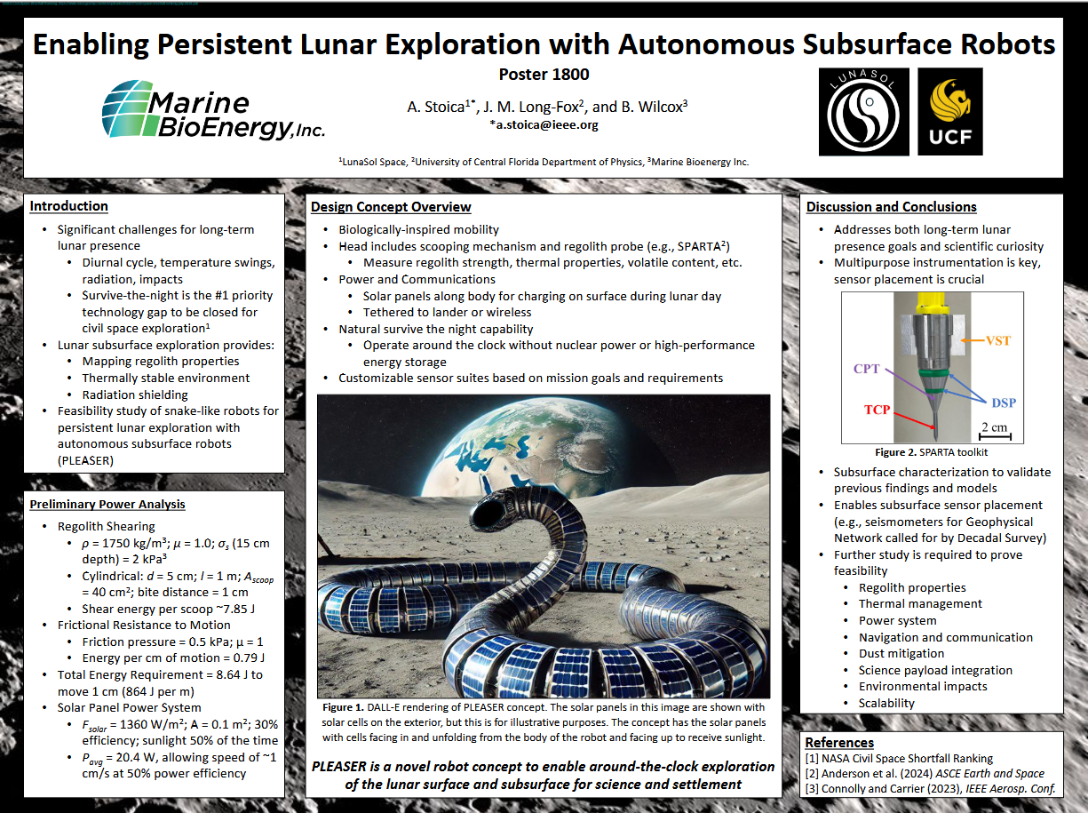 The research was conducted by Adrian Stoica, Jared Long-Fox, and Brian Wilcox. While Stoica and Wilcox are researchers with LunaSol Space LLC and the California-based biofuels company Marine Bioenergy Inc.(respectively), Long-Fox is a Planetary Exploration Research Scientist with the Center for Lunar & Asteroid Surface Studies(CLASS) at the University of Central Florida (UCF) and a NASA Space Technology Graduate Research Opportunities(NSTGRO) Fellow.