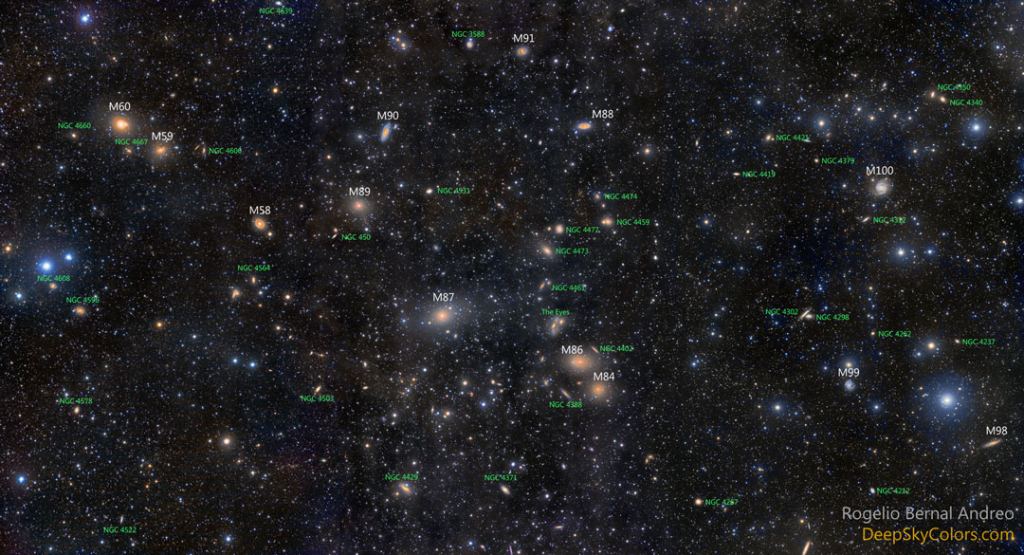 A team of astronomers used the MegaCam, a wide-angle optical camera mounted on the Canada-France-Hawaii Telescope to map out the Virgo Galaxy cluster. This cluster is massive, containing over a thousand member galaxies, and is the closest cluster to our own Milky Way galaxy.
