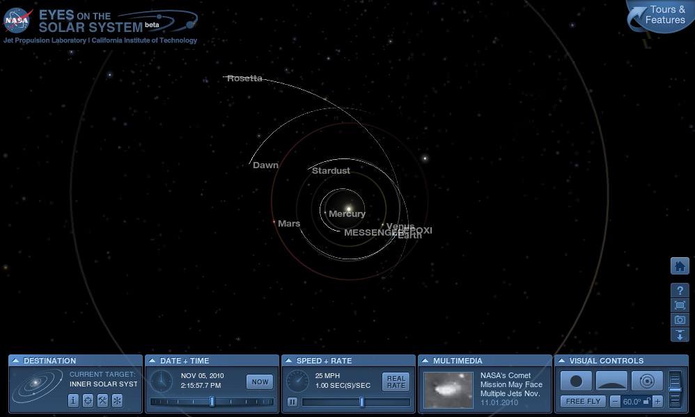 , this browser application gives you a 3D environment running in real time and is updated regularly with NASA spacecraft mission data.