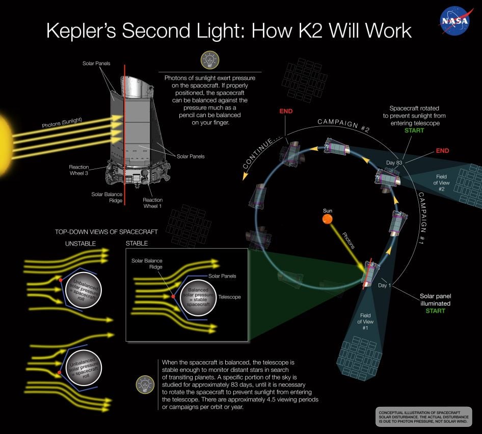 What the Kepler engineers came up with is one of the most ingenious spacecraft rescues in the history of spaceflight. They realized that they could use light pressure from the Sun to perfectly stabilize the telescope and keep it pointed at a region of the sky.