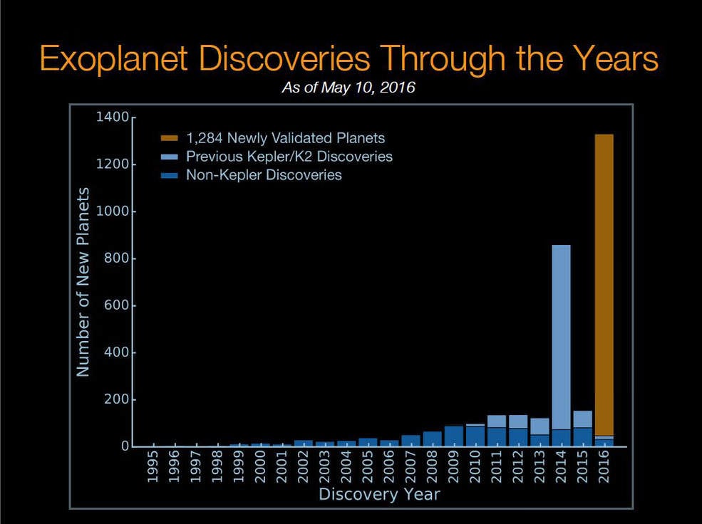 The number of confirmed exoplanets, by year. Credit: NASA[/caption]