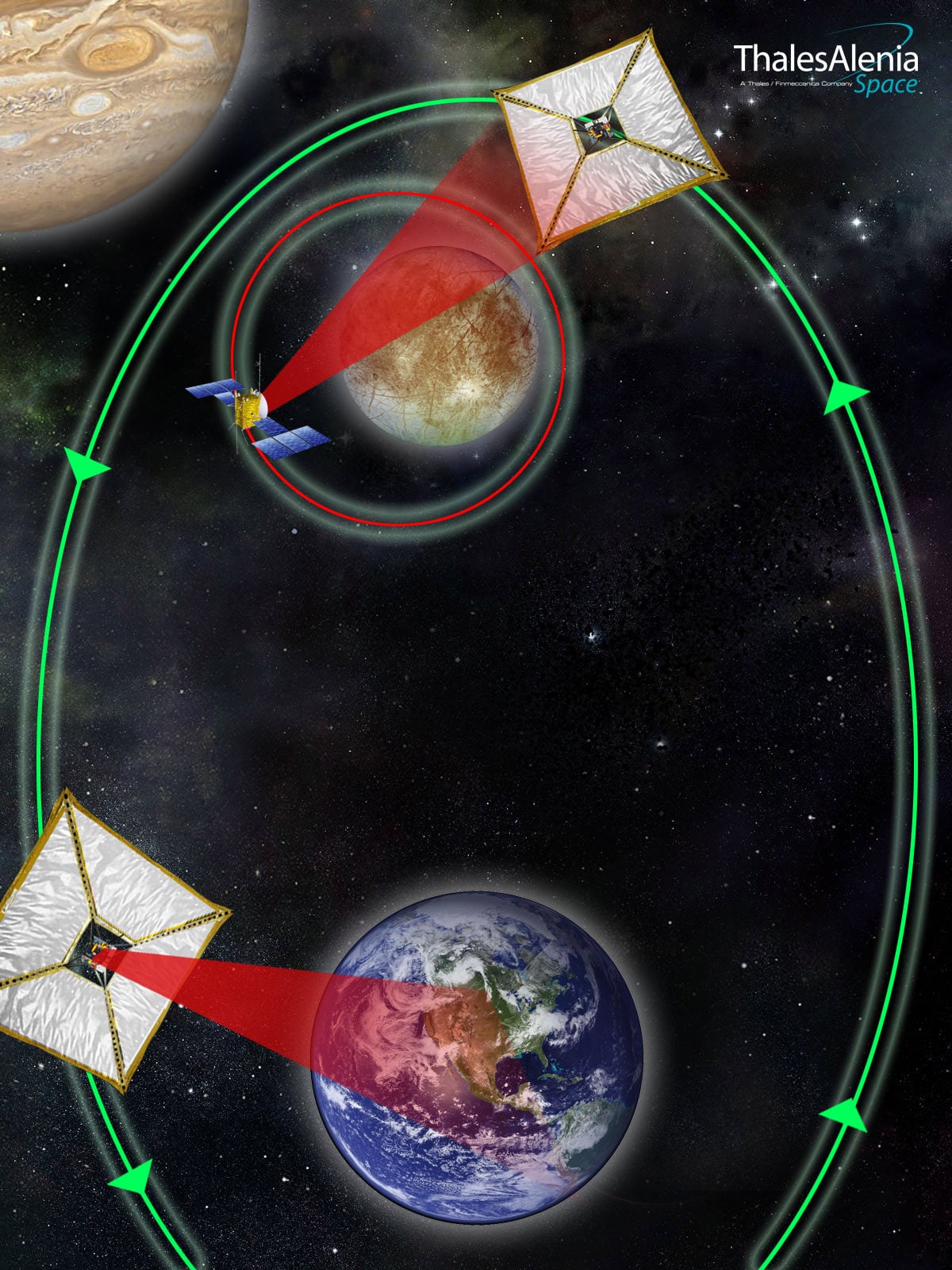 "Space-rated flash memories will soon be able to store the huge quantities of data needed for the global mapping of planetary bodies in high resolution." said Poncy. "But a full high-res map of, say, Europa or Titan, would take several decades to download from a traditional orbiter, even using very large antennae. Downloading data is the major design driver for interplanetary missions. We think that data clippers would be a very efficient way of overcoming this bottleneck."