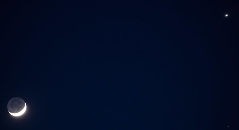 Venus is also bright enough to see in the daytime against a high-contrast, deep blue sky… if you know exactly where to look. A good guide is the crescent Moon, and the next opportunity to complete this feat of visual athletics is on March 28th, when the Moon passes 6.5 degrees southeast of Venus.