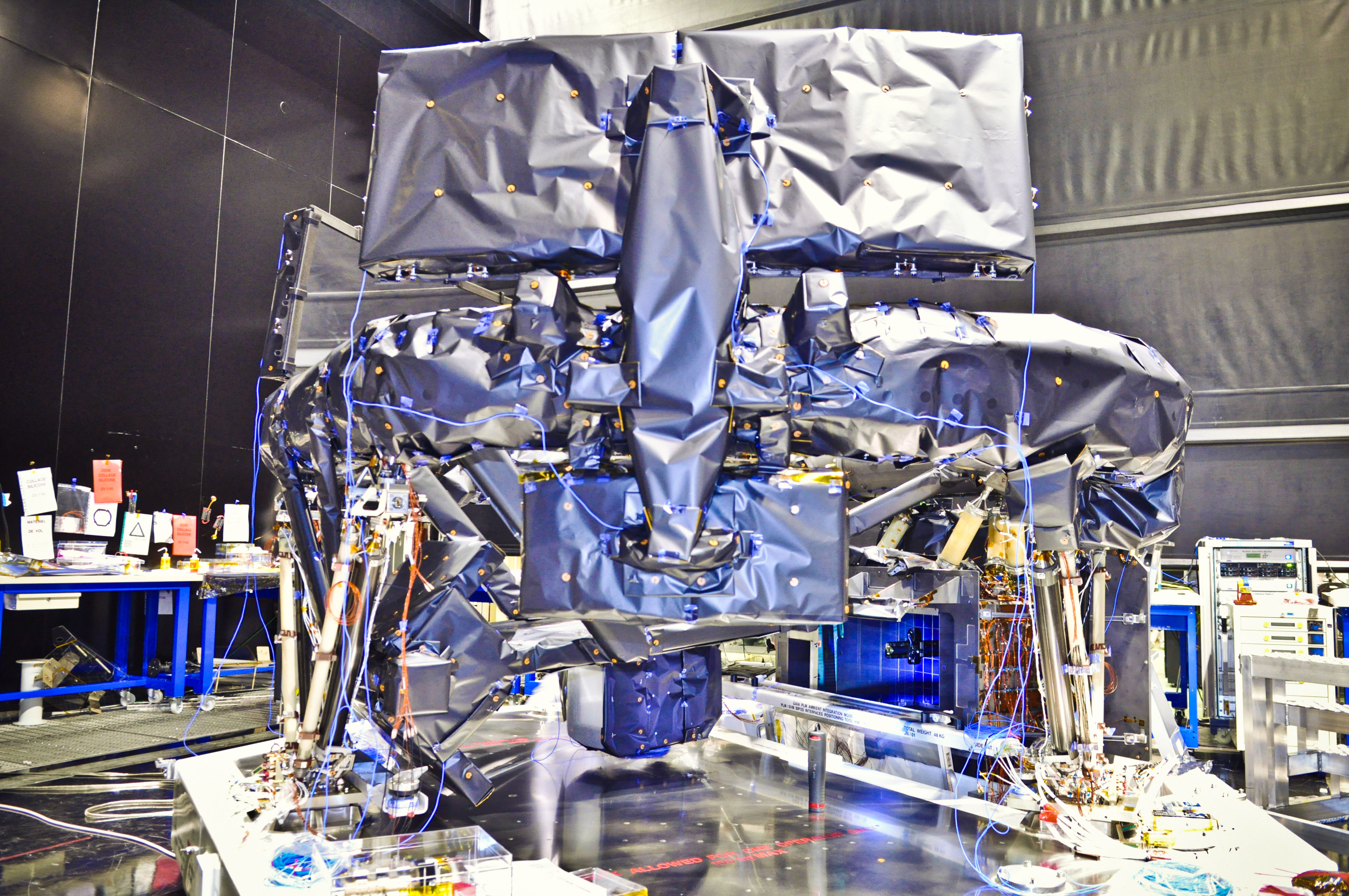 Caption: Fully integrated Gaia payload module with nearly all of the multilayer insulation fabric installed. Credit: Astrium SAS