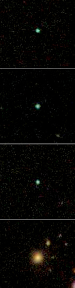 Cardamone asked the volunteers, many of whom had no previous astronomy background or experience, to refine the sample of objects they detected in order to determine which were bona fide Green Peas and which were not, based on their colors. By analyzing their light, Cardamone determined how much star formation is taking place within the galaxies.